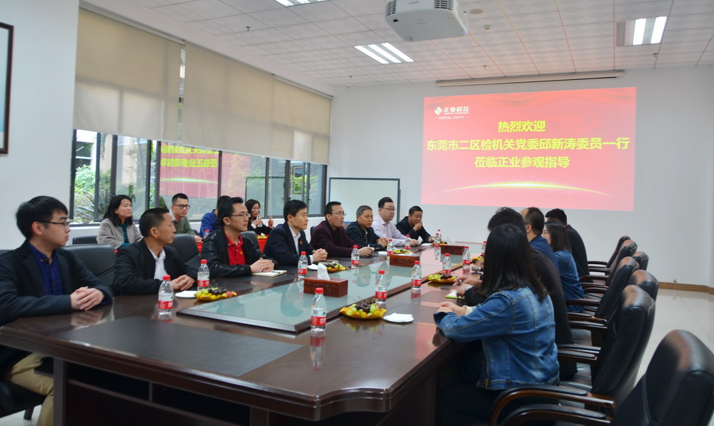 1月25日,為走進、了解和支持民營企業(yè)黨建工作,東莞市二區(qū)檢機關(guān)黨委邱新濤委員一行20余人蒞臨正業(yè)科技進行參觀考察交流。正業(yè)科技總裁辦主任雷卓林、總裁辦品牌部經(jīng)理周亮等領(lǐng)導熱情接待了來訪嘉賓。