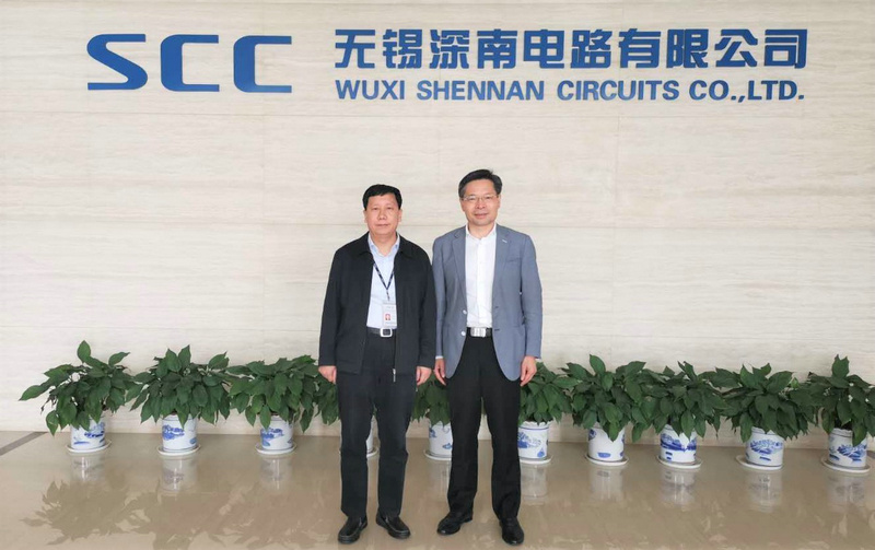 ▲集團董事長徐地華(右)與深南電路董事長楊之誠(左)進行戰(zhàn)略合作深度交流