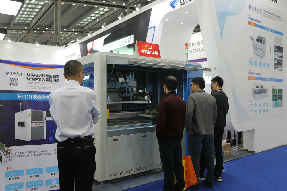 展位現(xiàn)場展示了字符噴印機(jī)、自動(dòng)線寬測量儀、CCD片材絲印機(jī)和PCB/FPC材料,觀展人士可以近距離參觀產(chǎn)品,看設(shè)備如何自動(dòng)化、智能化操作。
