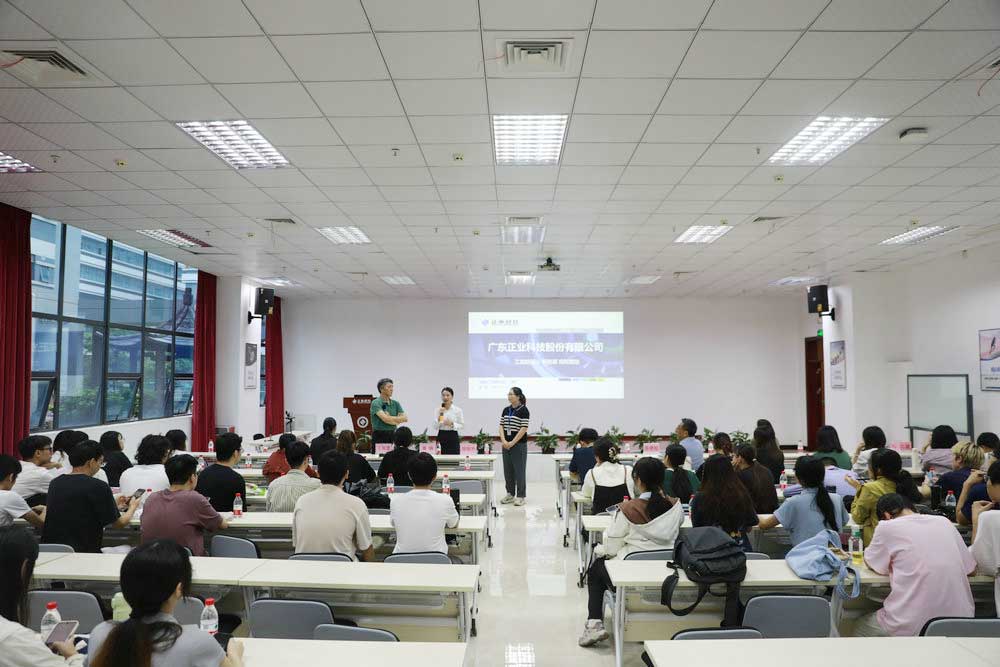 東莞理工學院師生一行率先參觀了正業(yè)科技展廳,總裁辦滕娟主任為大家詳細介紹了正業(yè)科技發(fā)展歷程、行業(yè)布局、重點產(chǎn)品以及創(chuàng)新技術等情況。隨后,大家來到生產(chǎn)車間,了解到了正業(yè)科技設備的先進性及生產(chǎn)工藝的創(chuàng)新性。